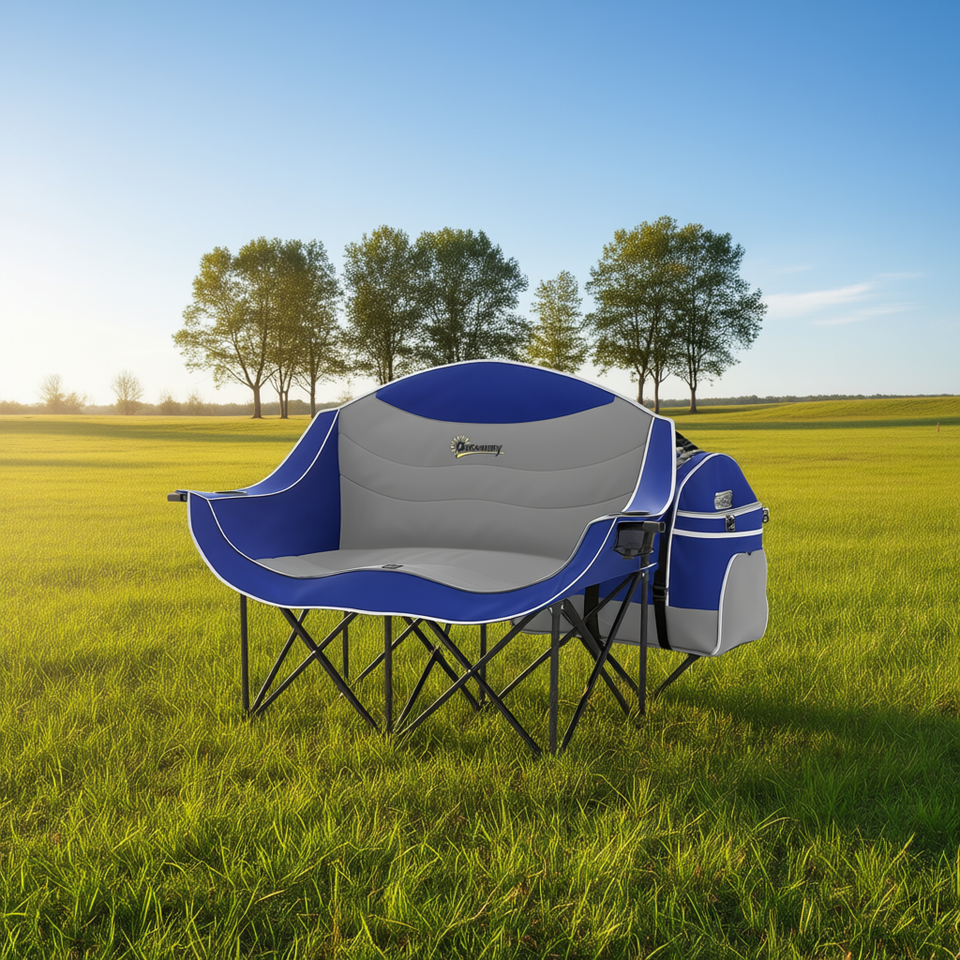 เก้าอี้แคมป์ปิ้งคู่ Outsunny สีน้ำเงิน แบบพับได้ โครงอะลูมิเนียม สำหรับใช้งานกลางแจ้งในสวน พร้อมกระเป๋าหิ้ว