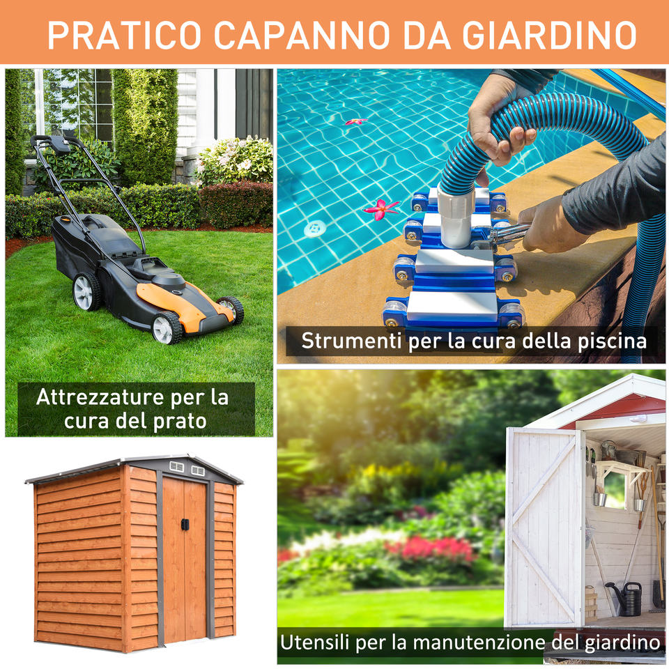 โรงเก็บของในสวน outsunny ทำจากเหล็กและ PP พร้อมช่องระบายอากาศและฐาน197x163x178-200ซม. สีน้ำตาล
