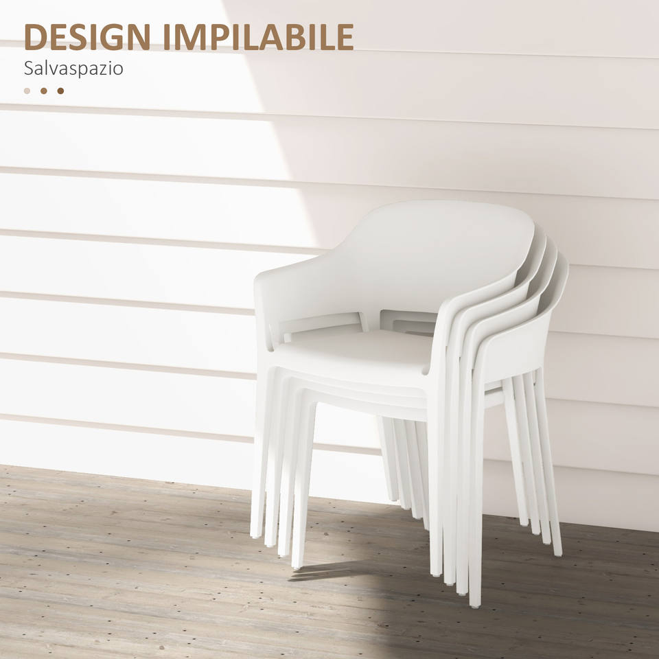Outsunny ชุด4เก้าอี้สวนพลาสติกซ้อนได้พร้อมที่วางแขนและพนักพิงสูงใน PP สีขาว