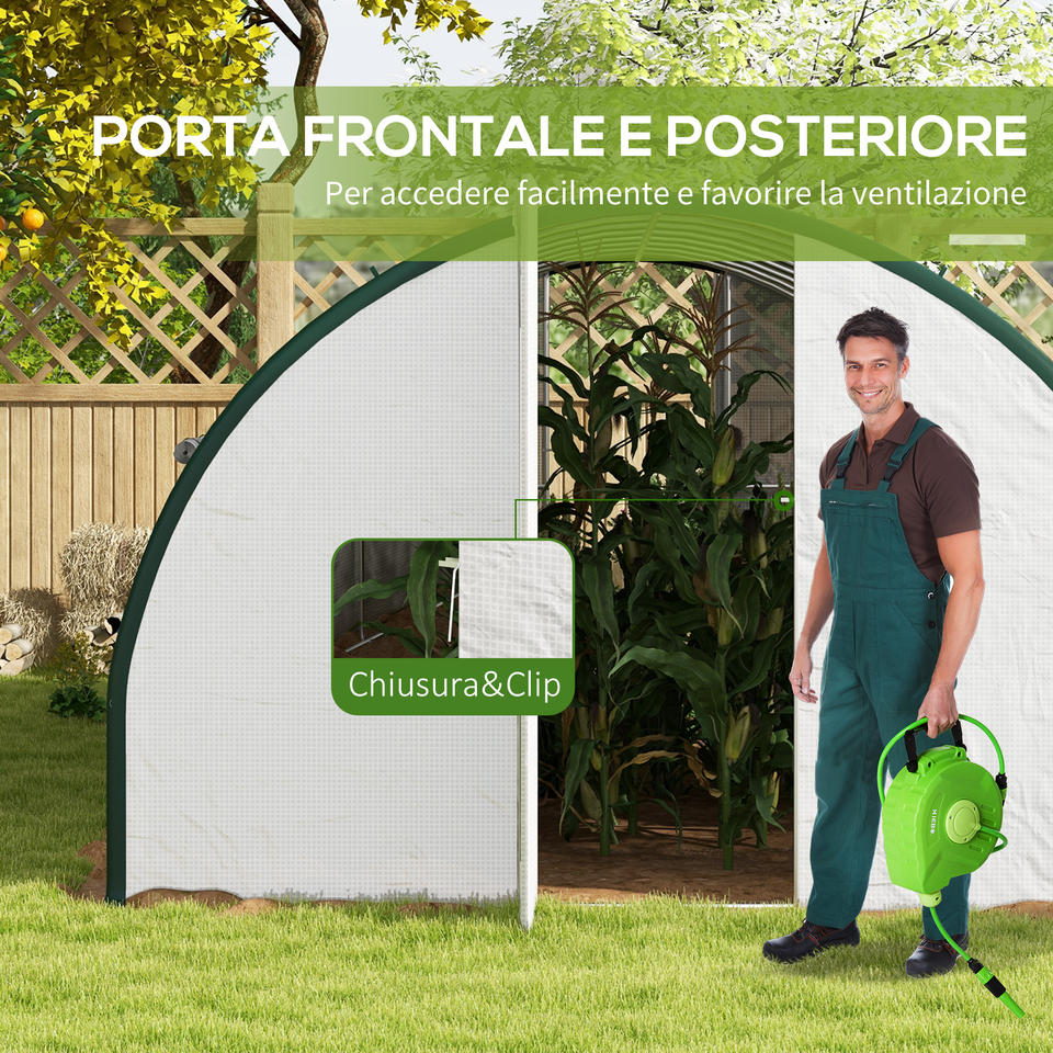 เรือนกระจกอุโมงค์ outsunny 6X3ม. มีทางเข้า2ทางและ8หน้าต่างใน PE เหล็กโพลีเอสเตอร์และชุบสังกะสีสีขาวและสีเขียว