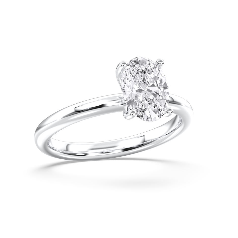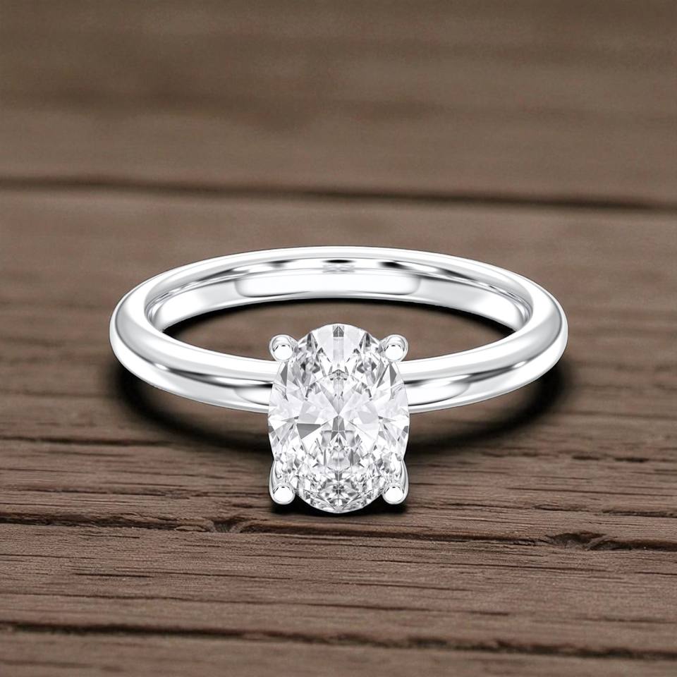 แหวนหมั้นเพชรโมอิสซาไนต์ทรงรี 1.40 กะรัต E-F/VVS VS ประดับเพชรเม็ดเดี่ยว ตัวเรือนแพลตตินั่มแบบหนามเตย สำหรับผู้หญิง