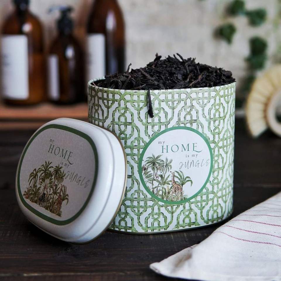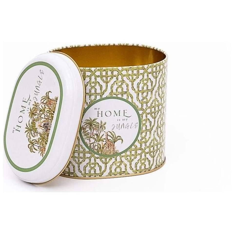 กระป๋องโลหะ1.4L รูปไข่140x120x130มม. การออกแบบป่าเขตร้อน-สวรรค์อันเขียวชอุ่มของธรรมชาติและสัตว์ป่าสำหรับการเก็บรักษาอาหาร