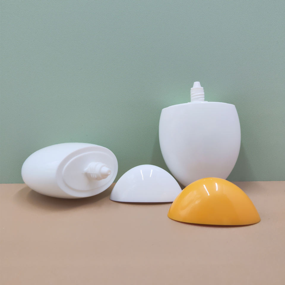 ภาชนะเครื่องสำอาง PP วงรีขนาด50มล. ฝาเกลียวสีขาวขวดพลาสติกพิมพ์สกรีนสำหรับครีมกันแดดครีมโลชั่นผลิตภัณฑ์สำหรับผมน้ำ