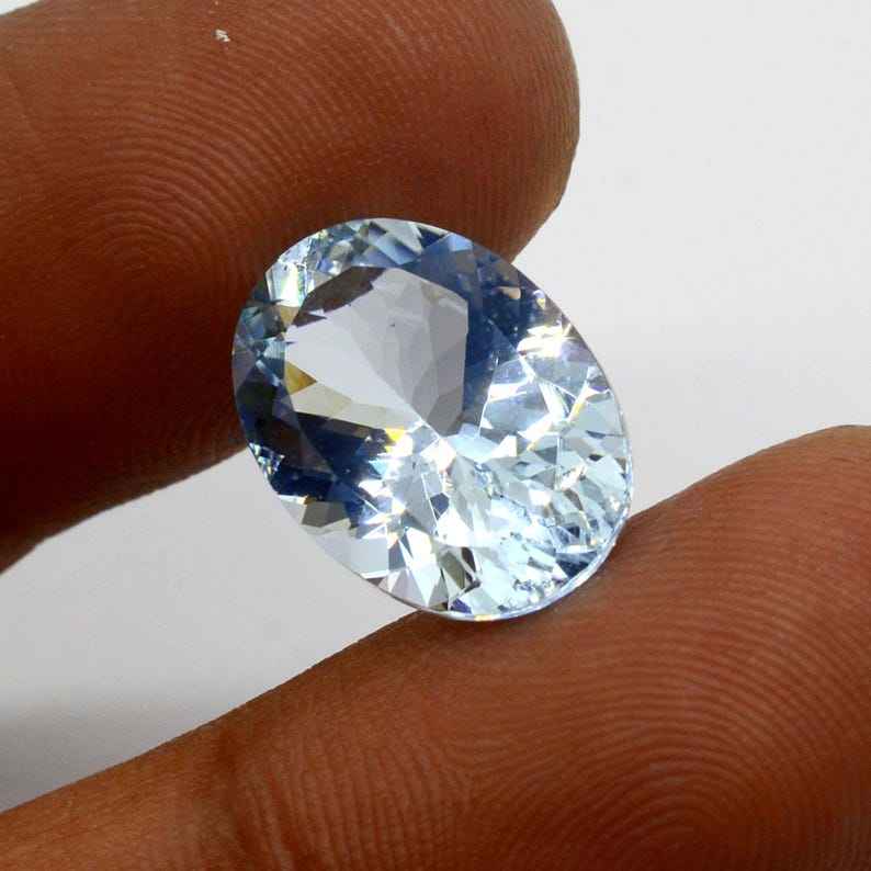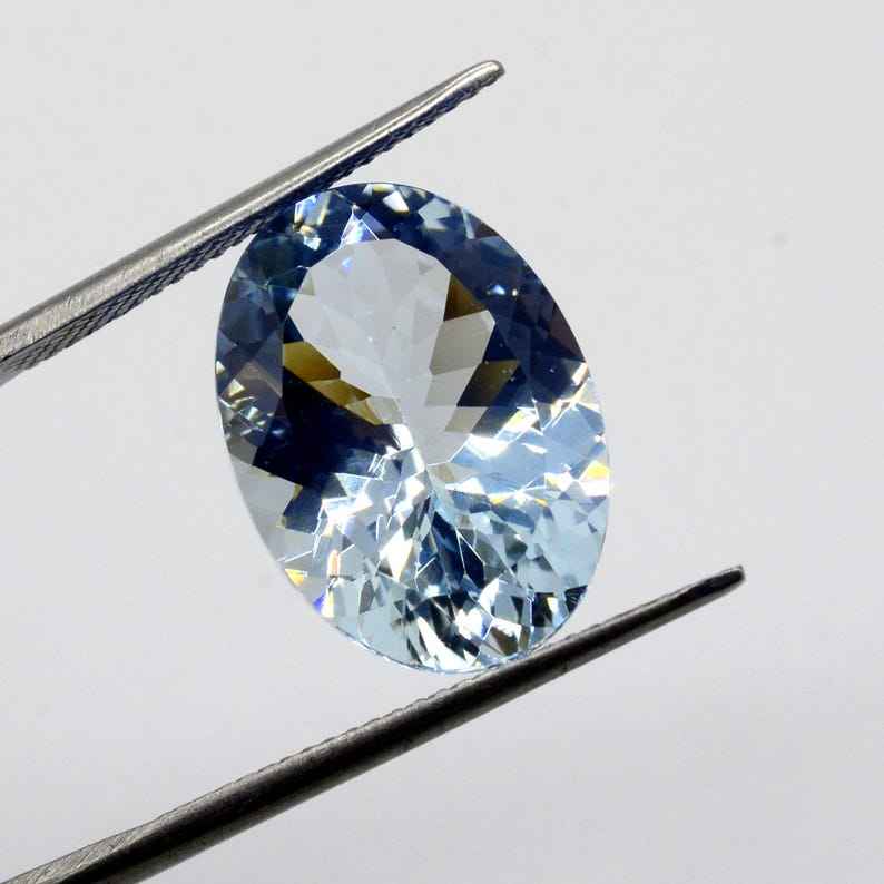 พลอยอะความารีนทรงรี เจียระไนธรรมชาติ 7.50 กะรัต AA+ สีน้ำเงิน ได้รับการรับรองจาก CAL มีการเล่นสี แบบมีรอยแตก แบบเม็ดเดี่ยว