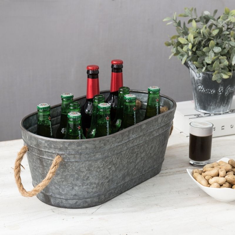 ถังน้ำแข็งชุบสังกะสีทรงรีถังทำน้ำแข็งสำหรับปาร์ตี้อ่างน้ำแข็งพร้อมที่จับเชือกสปาร์กกลิ้งไวน์