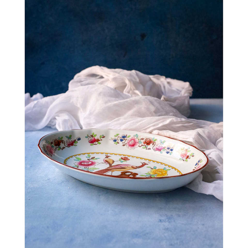 ถาดพอร์ซเลนลายนกสวรรค์ทรงรี ขนาด 27 ซม. x 18.5 ซม.