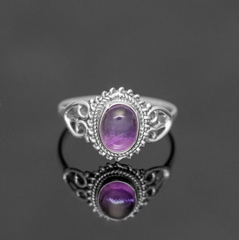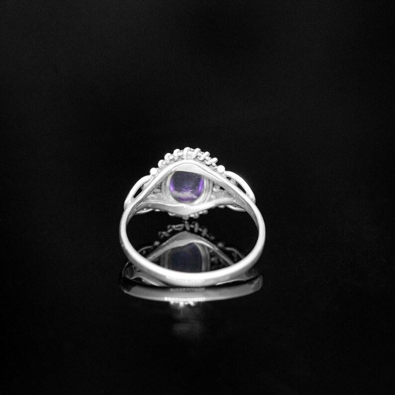 แหวนพลอยอเมทิสต์หลังเบี้ยทรงรี925สเตอร์ลิงเงินแฮนด์เมดเครื่องประดับอัญมณีสีม่วงแหวนของขวัญสุดหรูสำหรับผู้หญิง