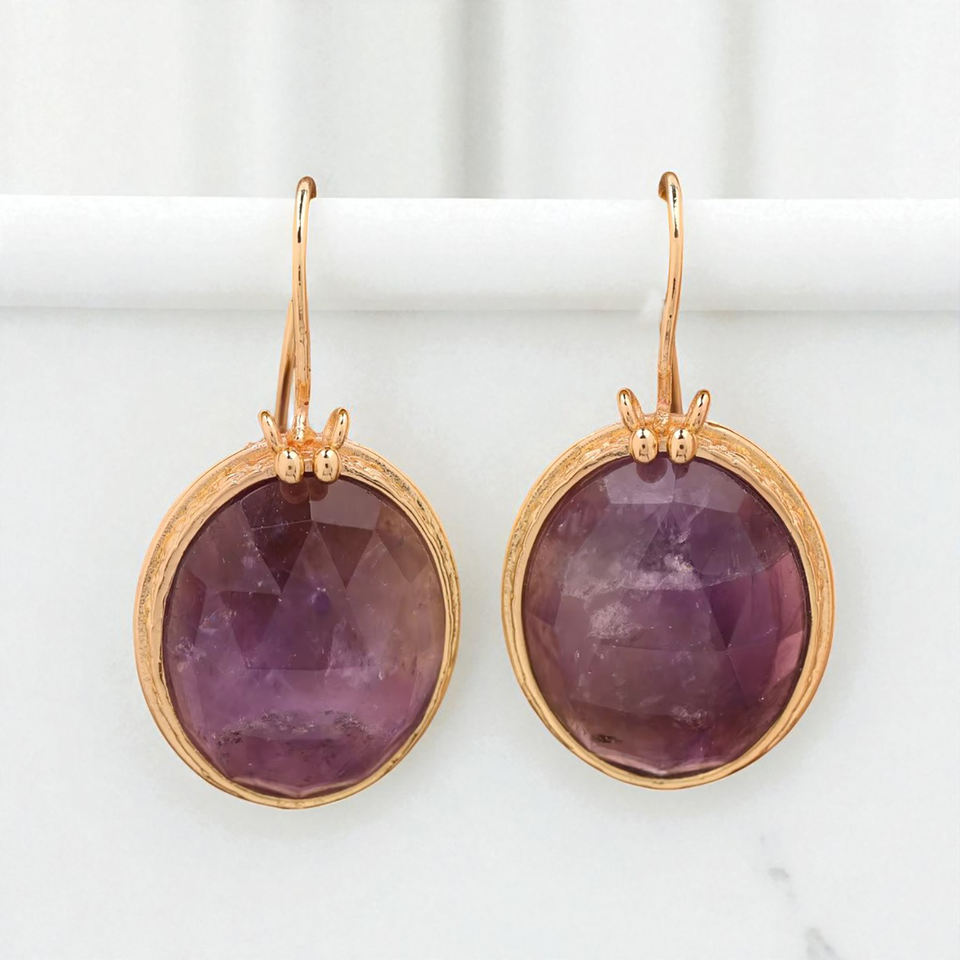 ต่างหูพลอยอเมทิสต์รูปวงรีทรงหยดน้ำต่างหูเม็ดกลมทำด้วยมือสีทองต่างหูเงิน925-เครื่องประดับขายส่ง