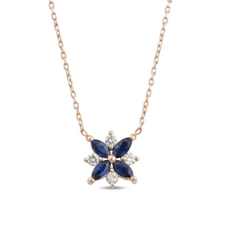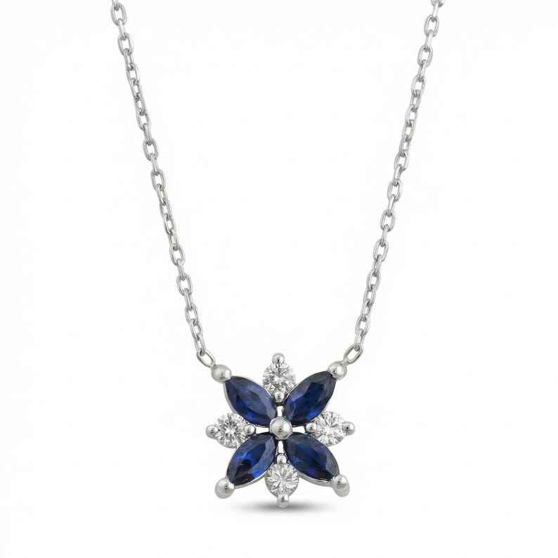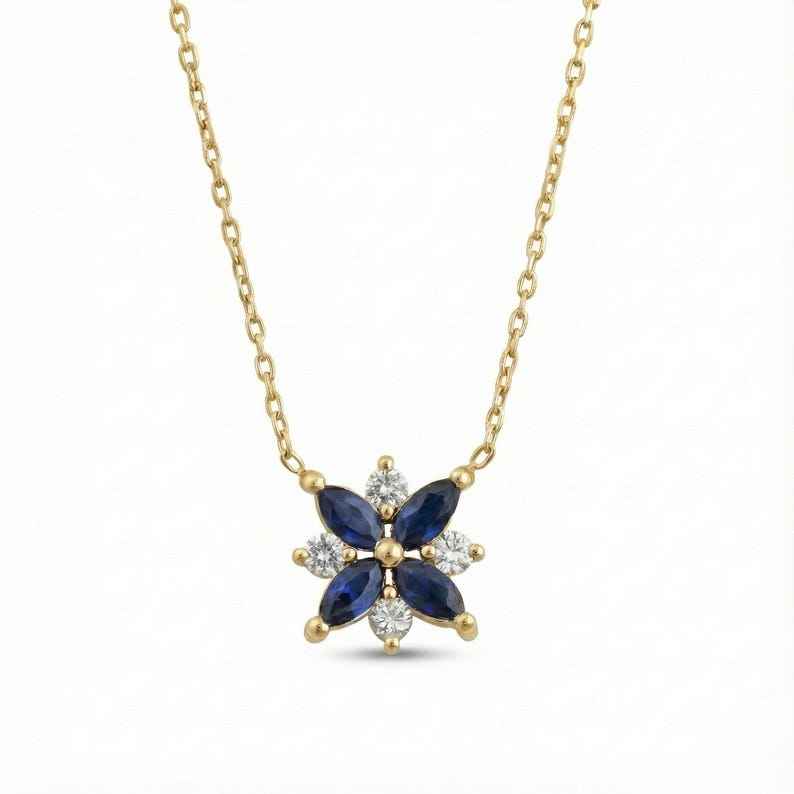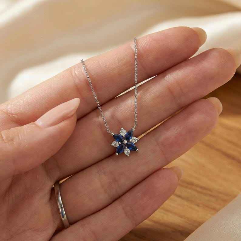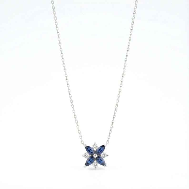สร้อยคอรูปวงรีประดับไพลินสีน้ำเงินคอร์นฟลาวเวอร์ พร้อมจี้เงินแท้ 925 ชุบทอง 14K