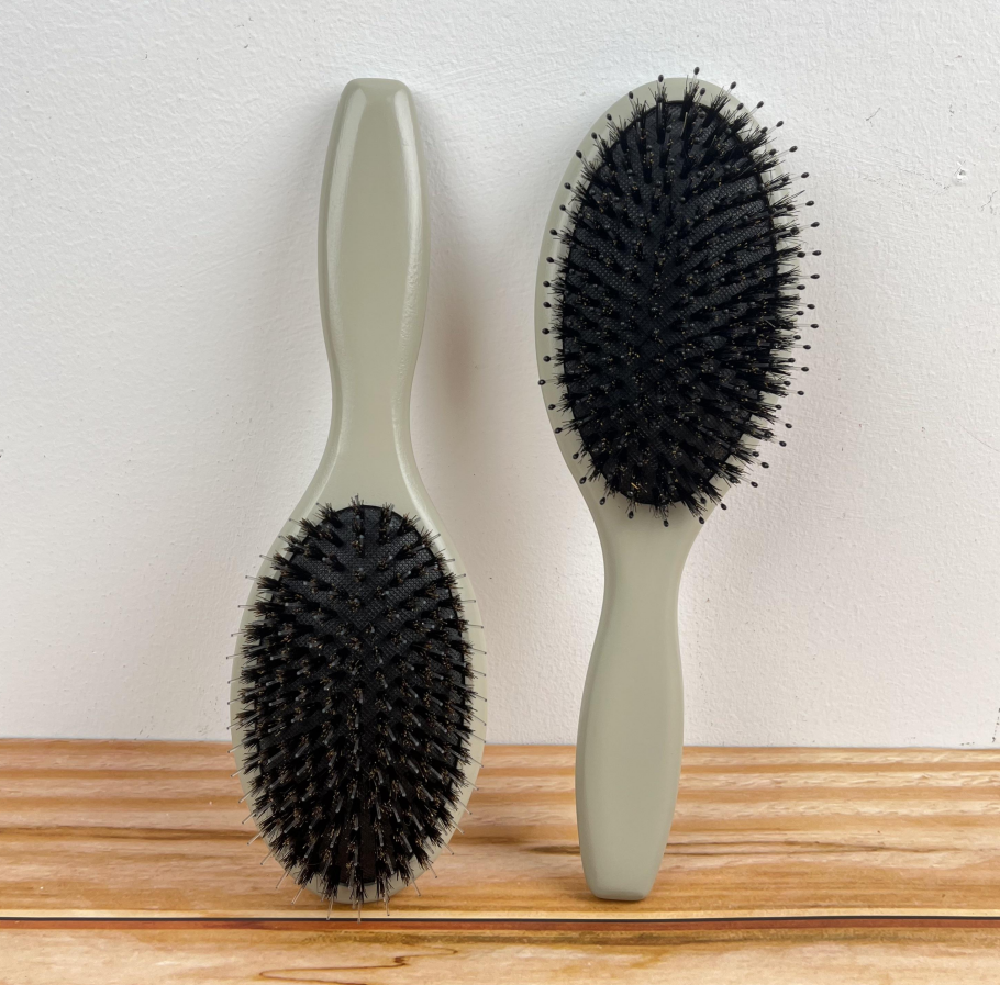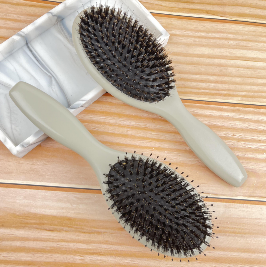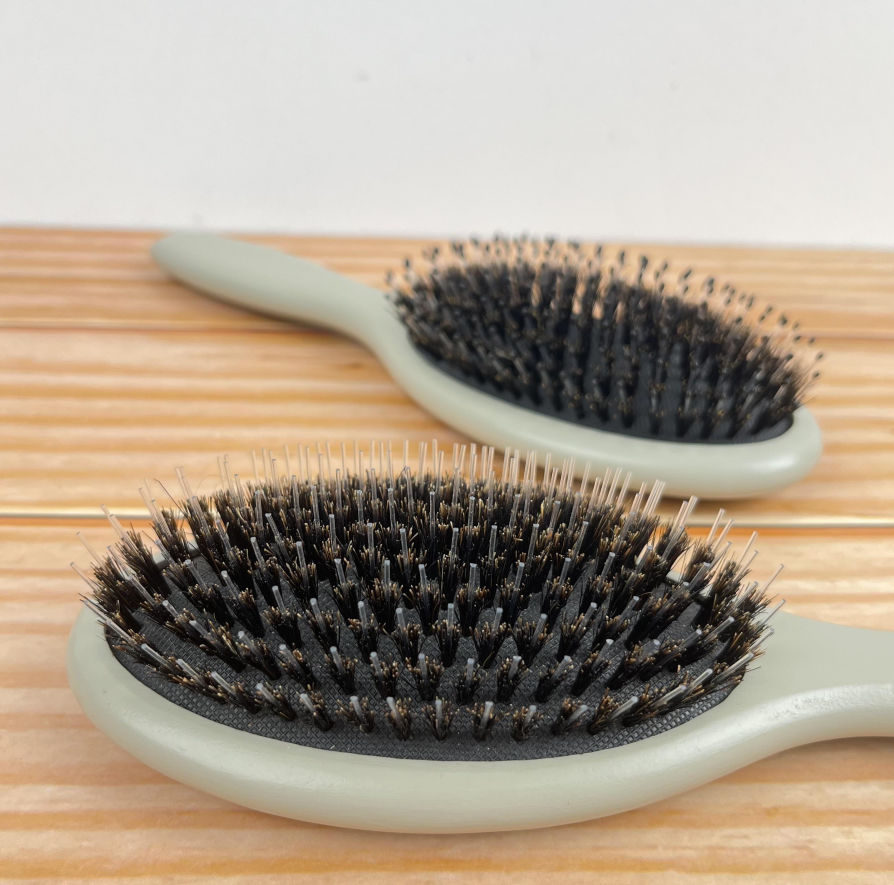 ขนแปรงหมูป่า (เพิ่มความเงางาม) + ไนลอน (หวีผมพันกันได้ง่าย)