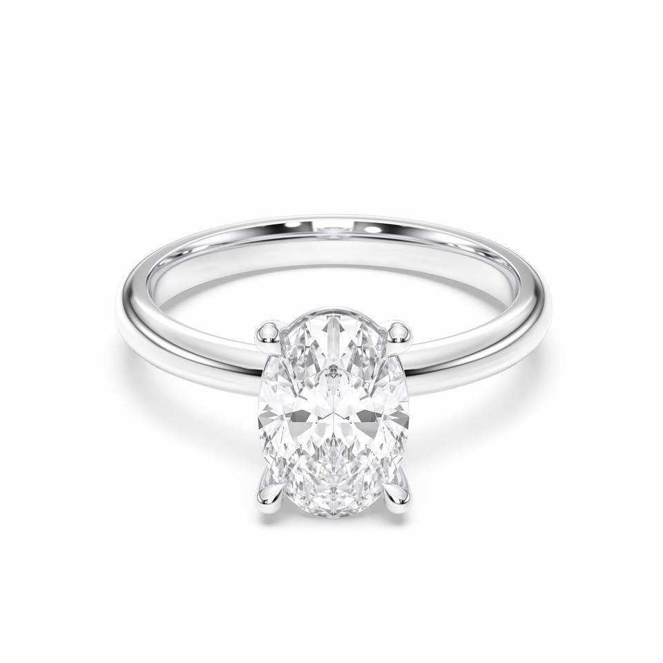 แหวนหมั้นเพชรทรงรี 1.98 กะรัต F-G/VS เพชรเลี้ยงในห้องปฏิบัติการ ฝังแบบหนามเตย ทำจากแพลตตินั่ม PT950 สำหรับผู้หญิง