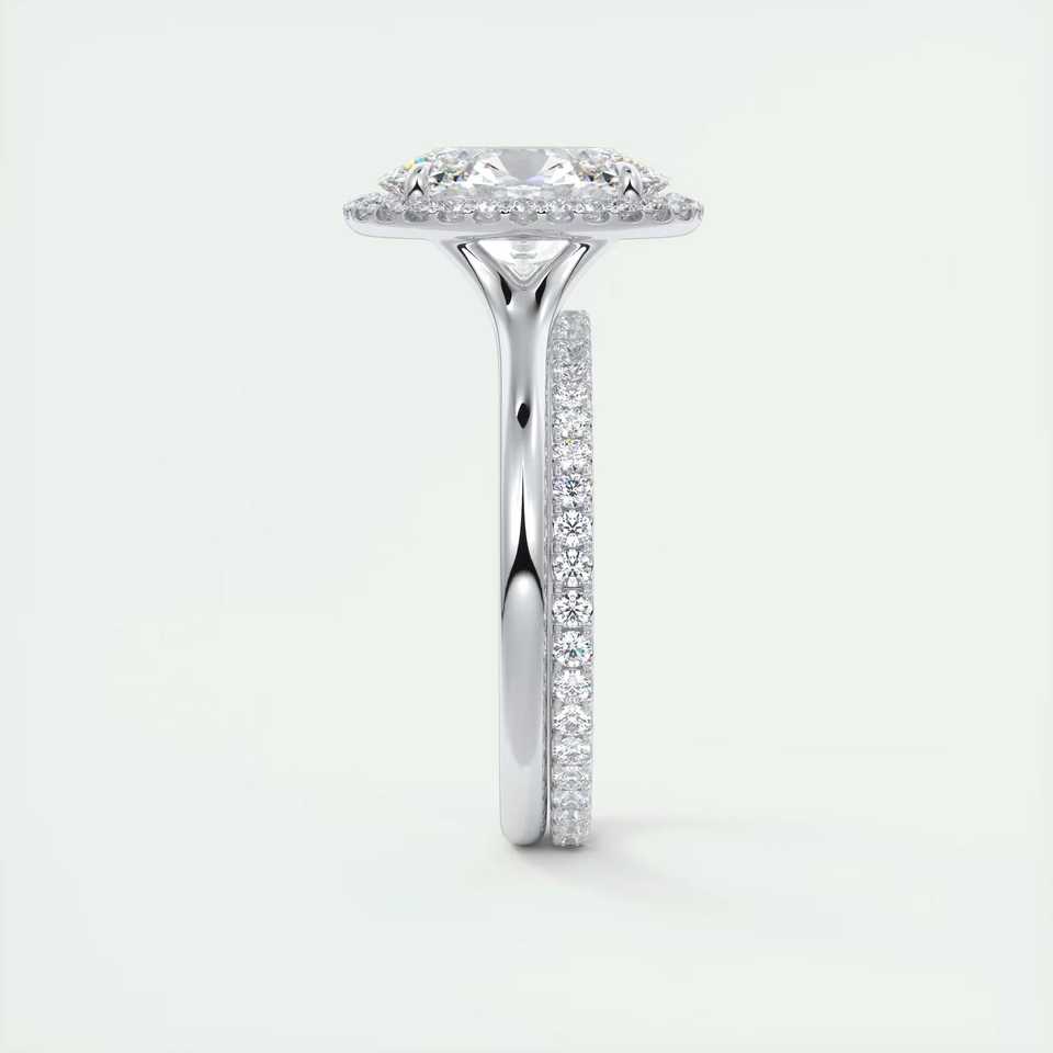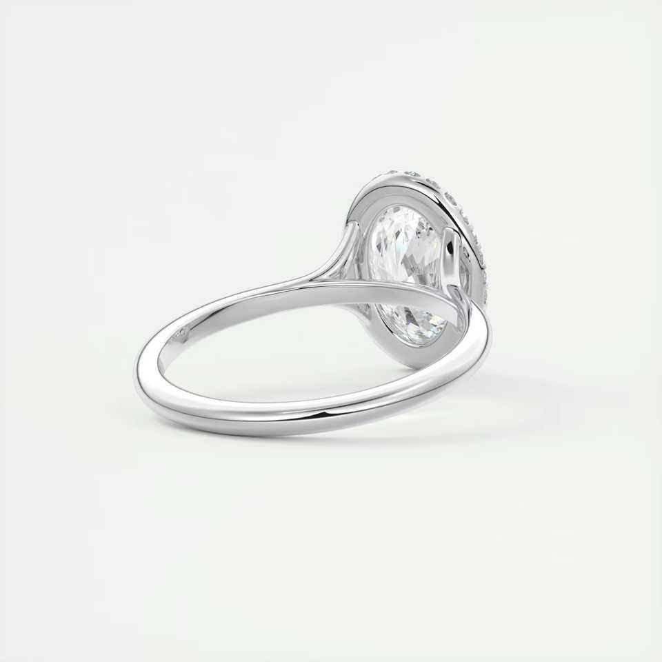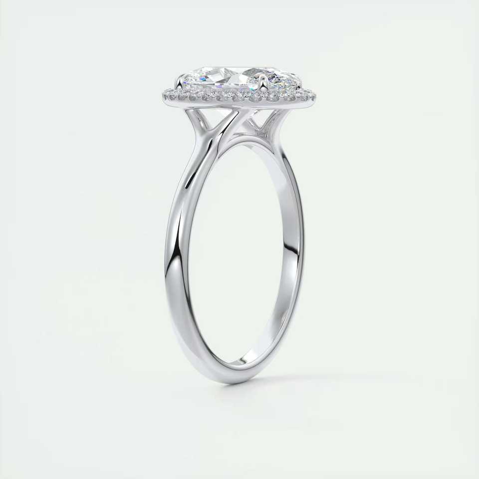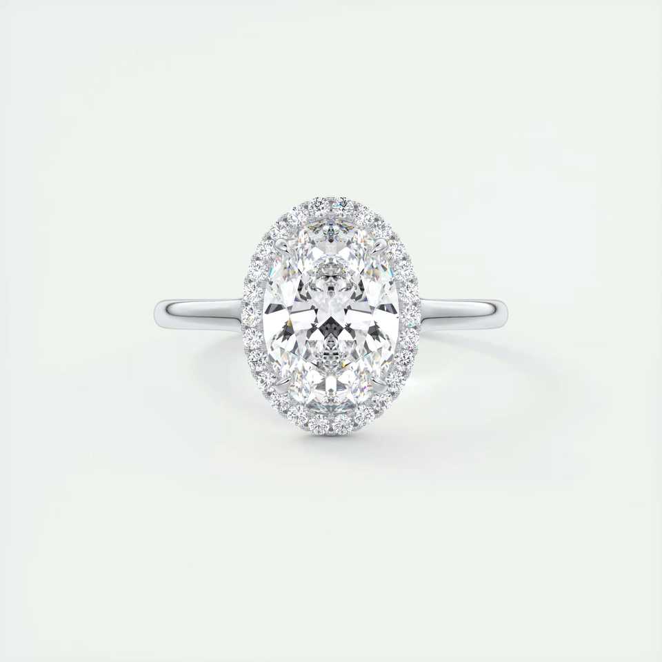 แหวนหมั้นเพชรทรงรี 2.10 กะรัต เพชรเลี้ยงในห้องปฏิบัติการ ประดับด้วยวงแหวนรอบเพชรแบบฝรั่งเศส ซ่อนอยู่ในทองคำขาว 14k