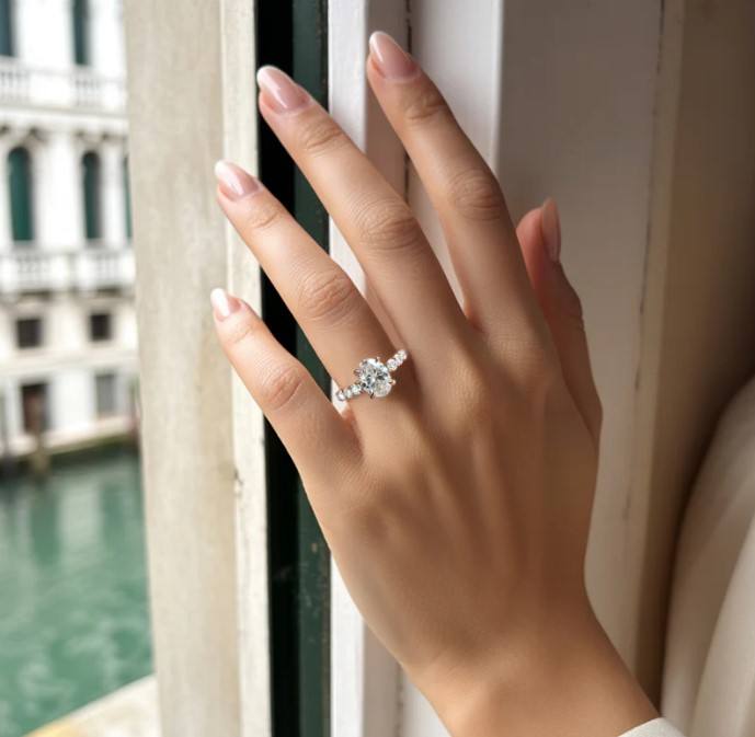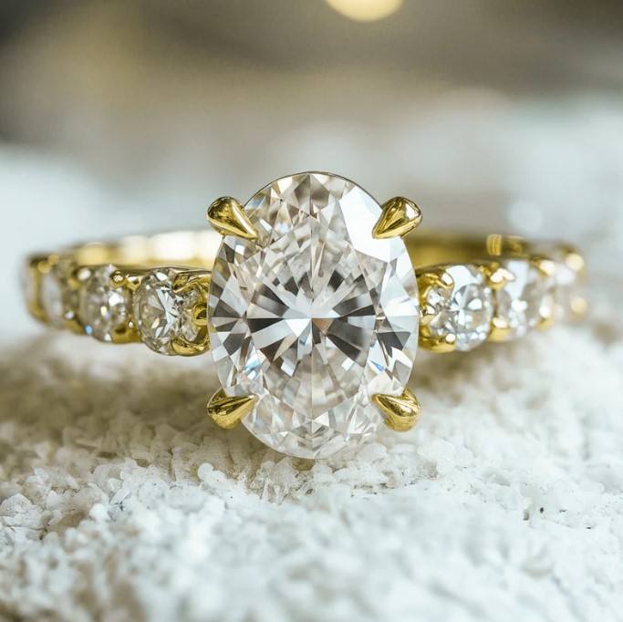 แหวนเพชรโมอิสซาไนต์ทรงรี 3 กะรัต ชุบทอง 18K เงินสเตอร์ลิง ดีไซน์หรูหรา สำหรับงานหมั้น งานแต่งงาน และงานเลี้ยง