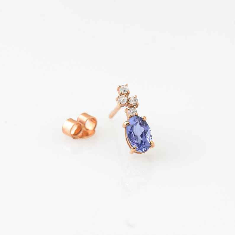 ต่างหูสตั๊ดไพลินสีน้ำเงิน ประดับอัญมณีระยิบระยับ
