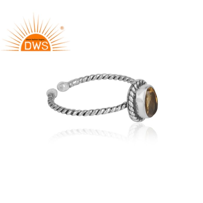แหวนเพชรซิทรินตัดรูปไข่ผู้ผลิตเครื่องประดับแหวนออกแบบบิดออกซิไดซ์925ผู้ค้าส่งเครื่องประดับเงิน