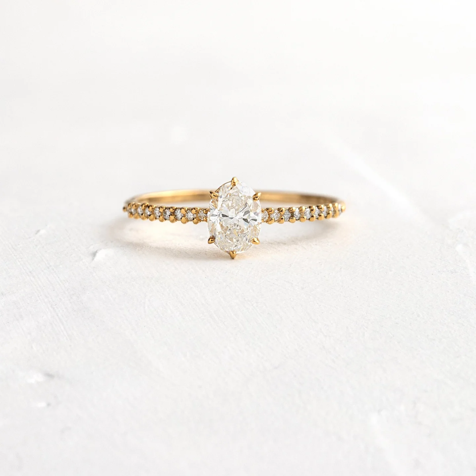 วินเทจอาร์ตเดคโคโมอิสซาไนต์แหวนแต่งงานแบบหนึ่งรูปแบบแหวนลูกแพร์ตัดเพชรเม็ดเดียวกับสายทองที่ได้รับการรับรอง