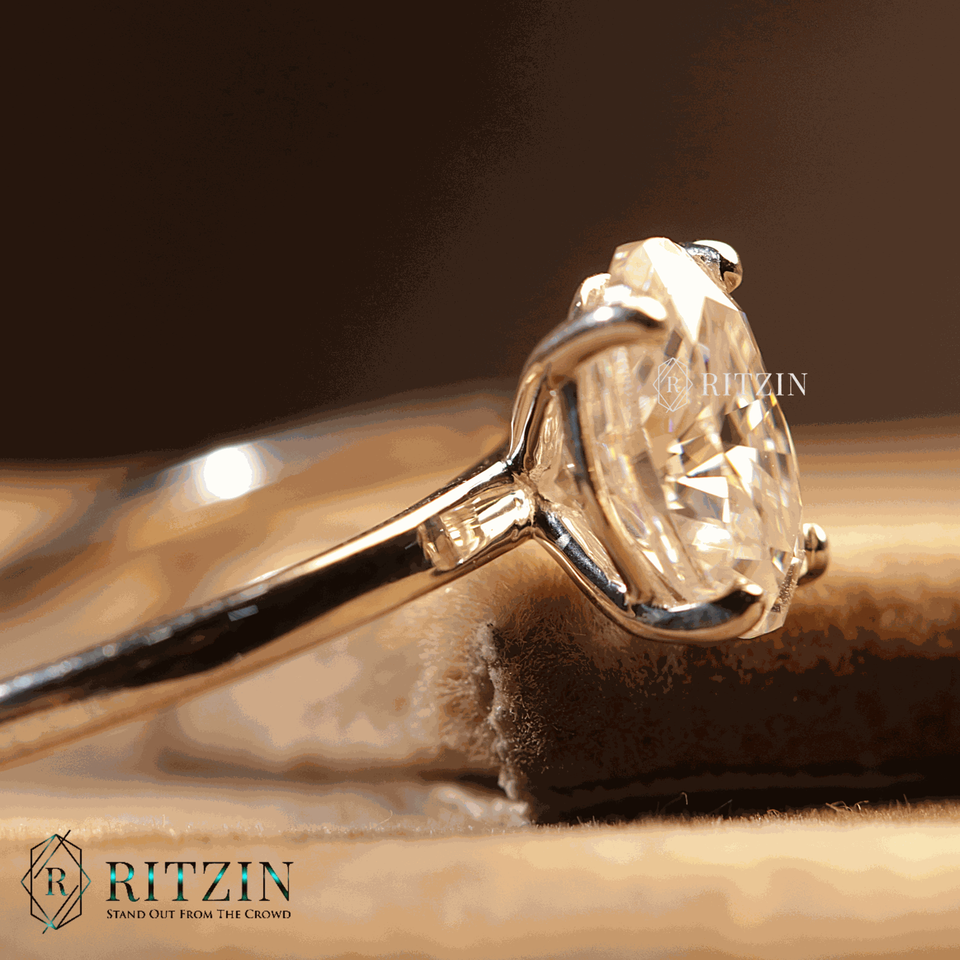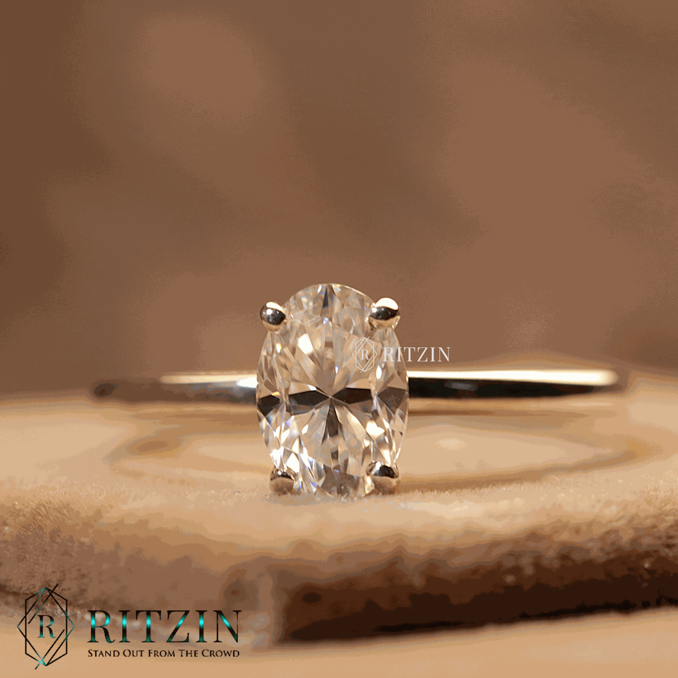 แหวนหมั้นเพชรรูปวงรีสไตล์โซลิแทร์สำหรับผู้หญิง