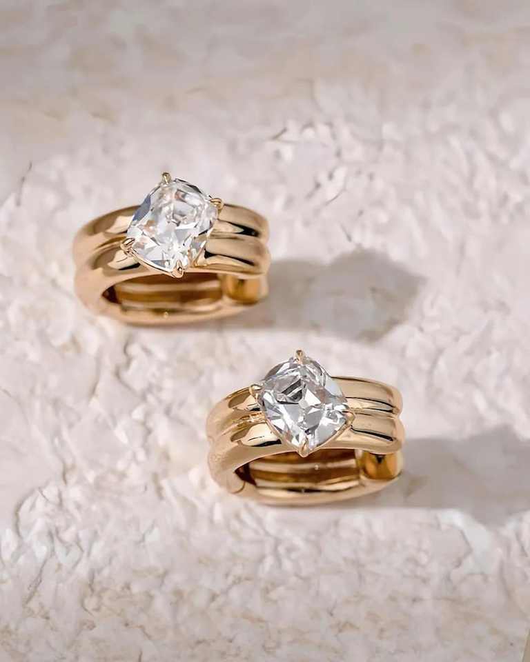 Design: ต่างหูห่วงคู่ทรงวงรีประดับเพชร