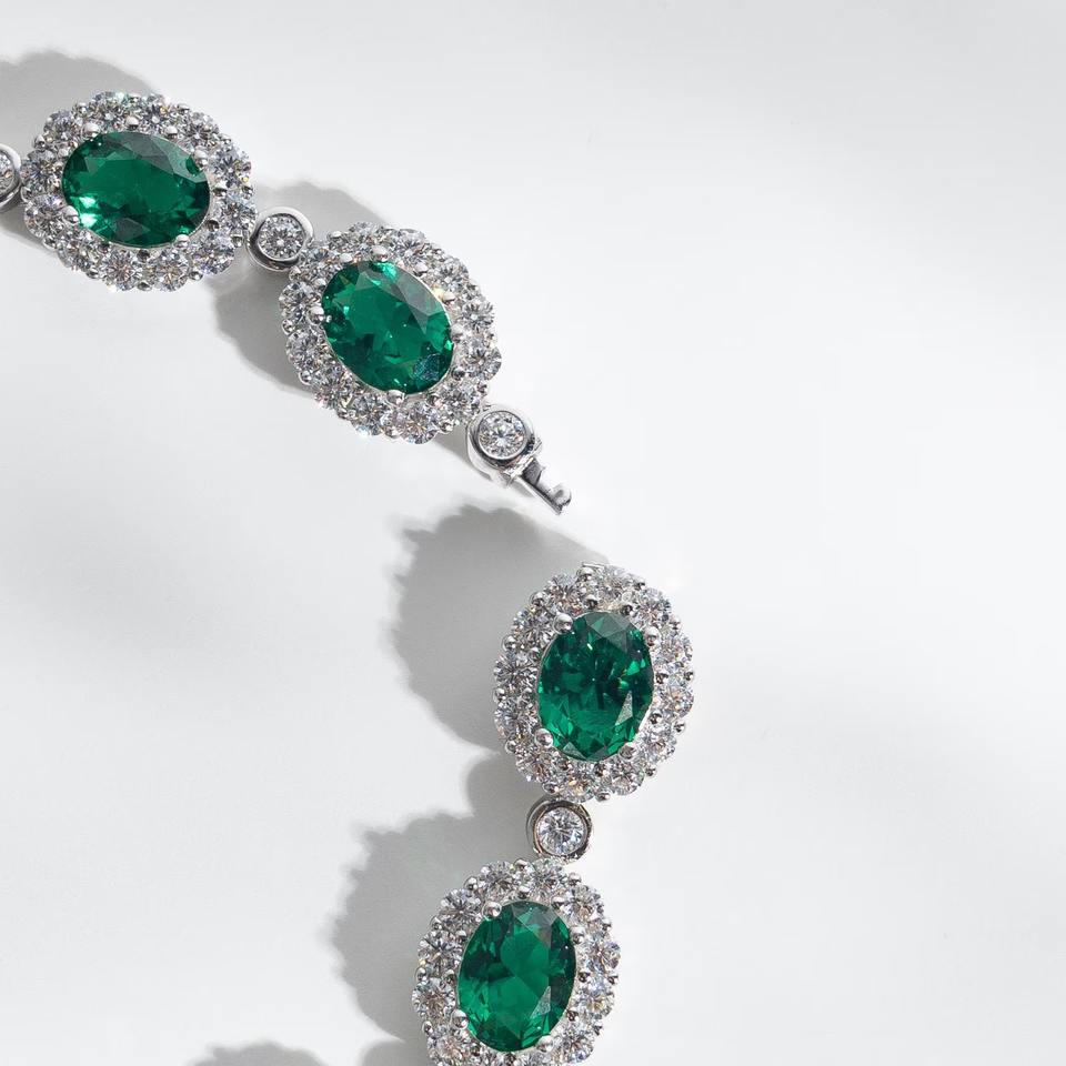 กำไลข้อมือโมอิสซาไนต์ทรงรีสีเขียวประดับเพชรไร้สีเงินแท้ 925 ของขวัญวันเกิดสำหรับผู้หญิงในราคาประหยัด
