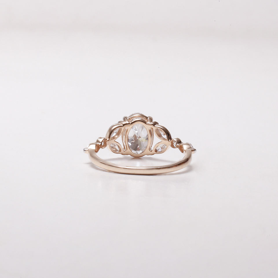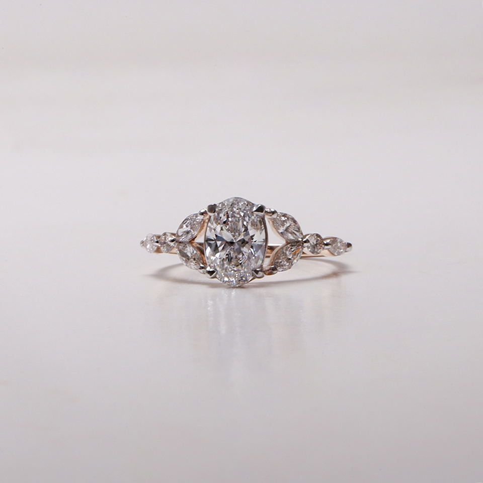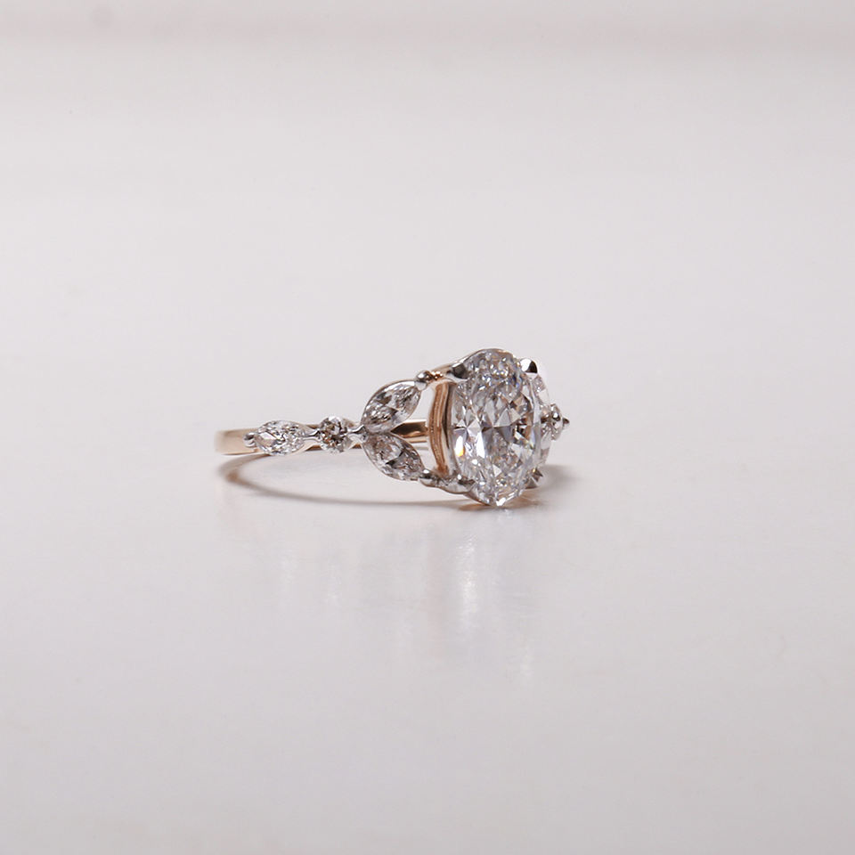 แหวนหมั้นเพชรทรงรีเพาะเลี้ยงในห้องปฏิบัติการ ประดับแบบหนามเตย ได้รับการรับรองจาก IGI หรูหราด้วยแพลตตินั่ม 950 สำหรับผู้หญิง