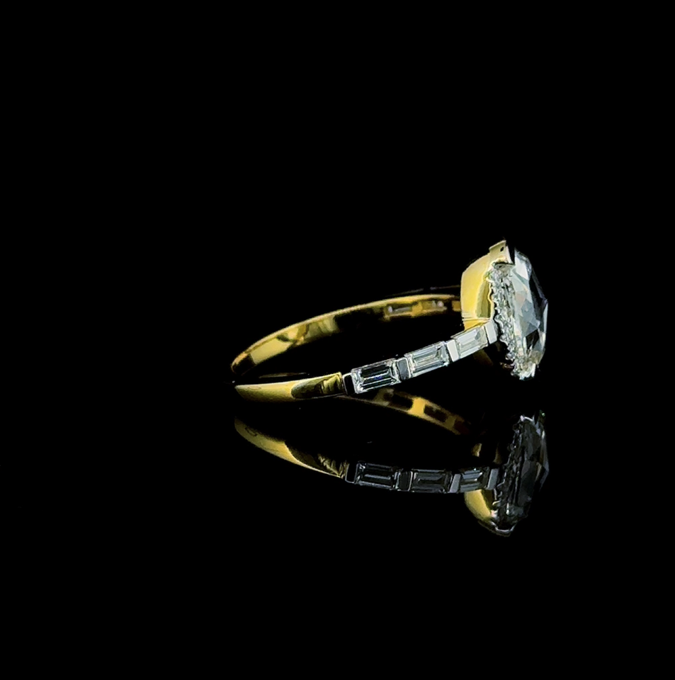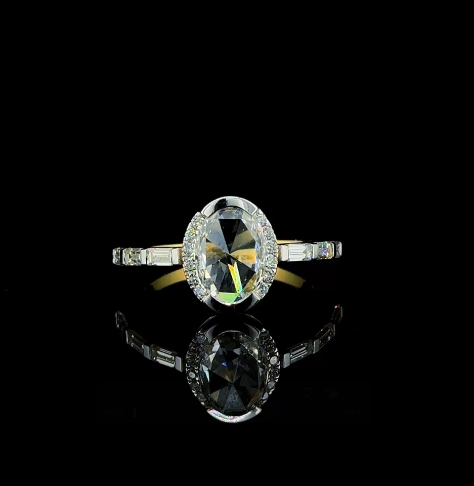 แหวนหมั้นเพชรทรงรีเพาะเลี้ยงในห้องปฏิบัติการ ประดับด้วยเพชรทรงบาแก็ตต์ด้านข้าง แหวนแต่งงานทองคำแท้สุดหรู