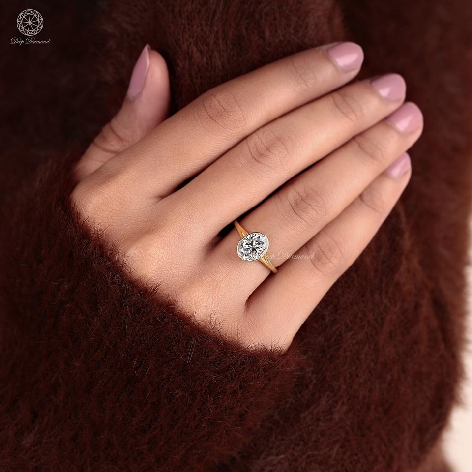 ชื่อสินค้า:แหวนหมั้นทรงโอวัลคัต ประดับเพชรสังเคราะห์แบบเซ็ตเบเซล รุ่นโซลิแทร์