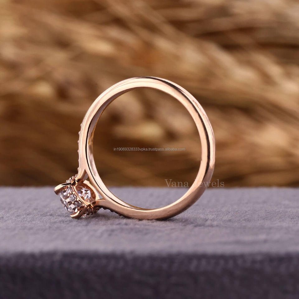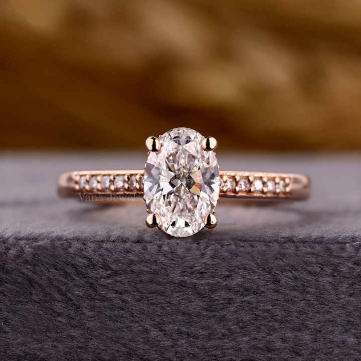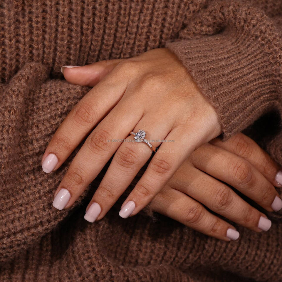 แหวนเพชรสำหรับปลูกในห้องปฏิบัติการทรงรีพร้อมรัศมีที่ถูกซ่อนสีทองงานหมั้นหรือของขวัญครบรอบแต่งงานแหวนเพชรที่ผ่านการรับรองของภรรยา IGI