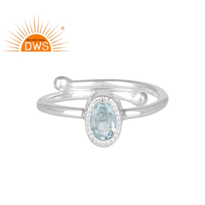 รูปไข่ตัดธรรมชาติสีฟ้าบุษราคัมพลอยแหวนเครื่องประดับผู้ผลิต925เงินออกแบบงบแหวนเครื่องประดับผู้ค้าส่ง