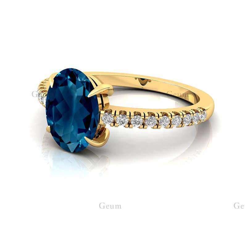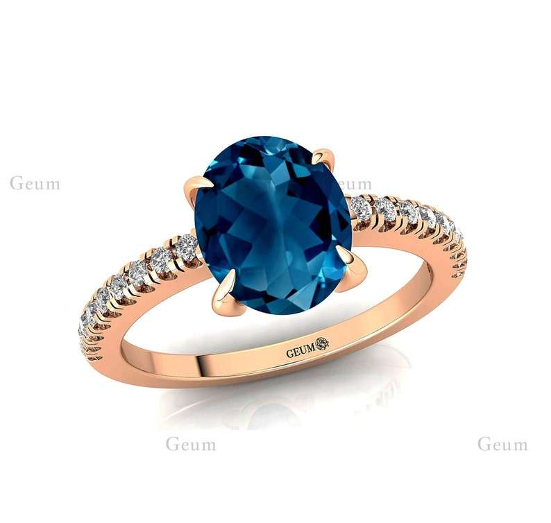 แหวนแต่งงานบุษราคัมสีฟ้าทรงวงรีทรงธรรมชาติสไตล์ลอนดอนดีไซน์ใหม่14K 18K แข็งสีขาวกุหลาบสีเหลืองทอง