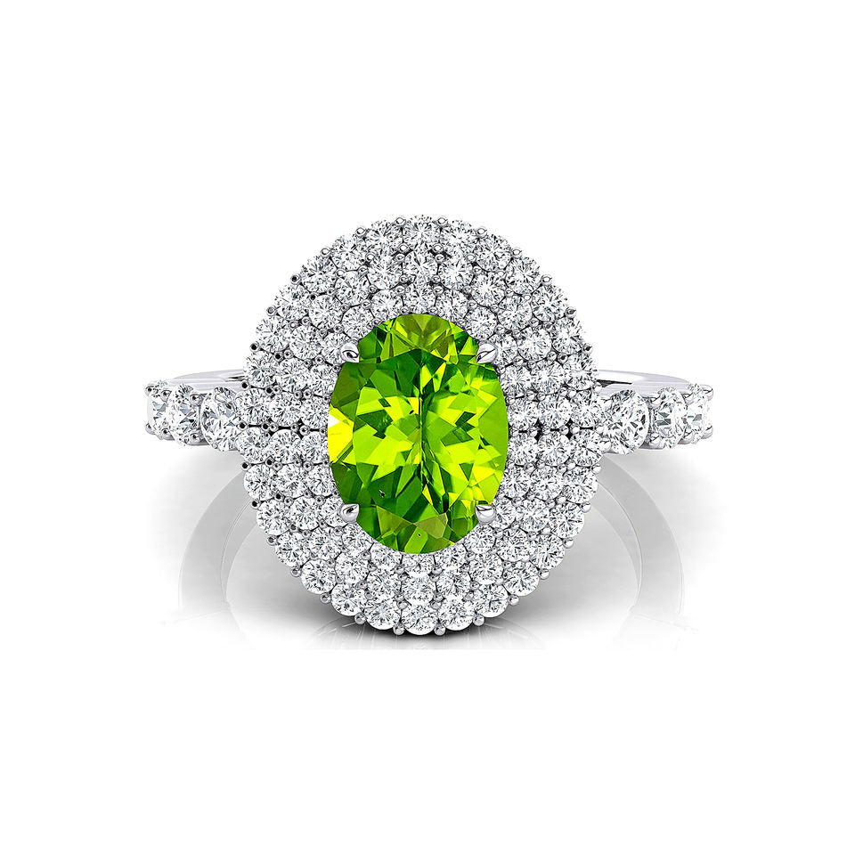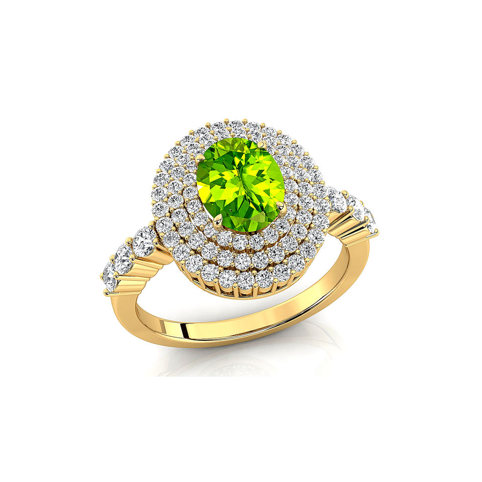 แหวนพลอยเพอริโดต์ธรรมชาติทรงรีสีทอง18K สุดหรูพร้อมเพชรสีขาวธรรมชาติเครื่องประดับขายส่ง ODM