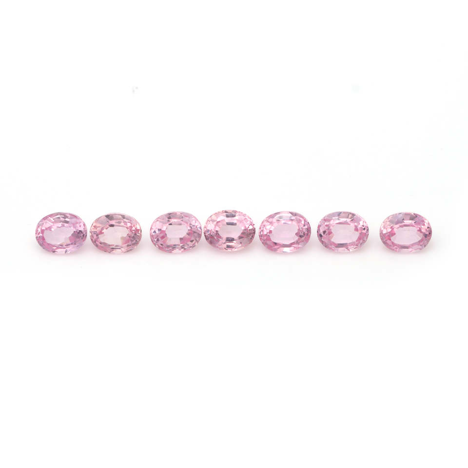 พลอยแซฟไฟร์สีชมพูทรงรี ผลิตในห้องปฏิบัติการ ขนาดหลากหลาย 2x3 ถึง 15x20 มม. รับรองโดยบุคคลที่สาม สำหรับแหวน จี้ และงานฝีมือ