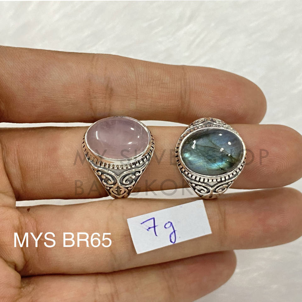 แหวนพลอยควอตซ์สีชมพูทรงรีและลาบราโดไรต์ ทำจากเงินแท้ 925 งานแฮนด์เมด เครื่องประดับคุณภาพ ราคาขายส่ง