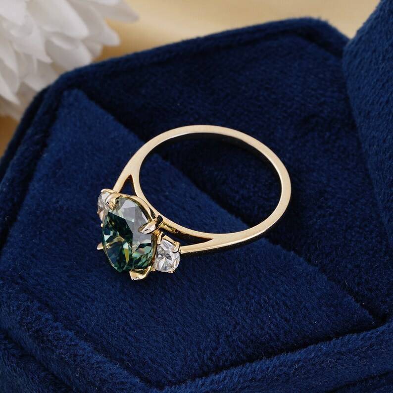 แหวนเพชรโมอิสสีเขียวเข้มทรงไข่ตัดเป็นของขวัญสำหรับผู้หญิงแฟชั่น