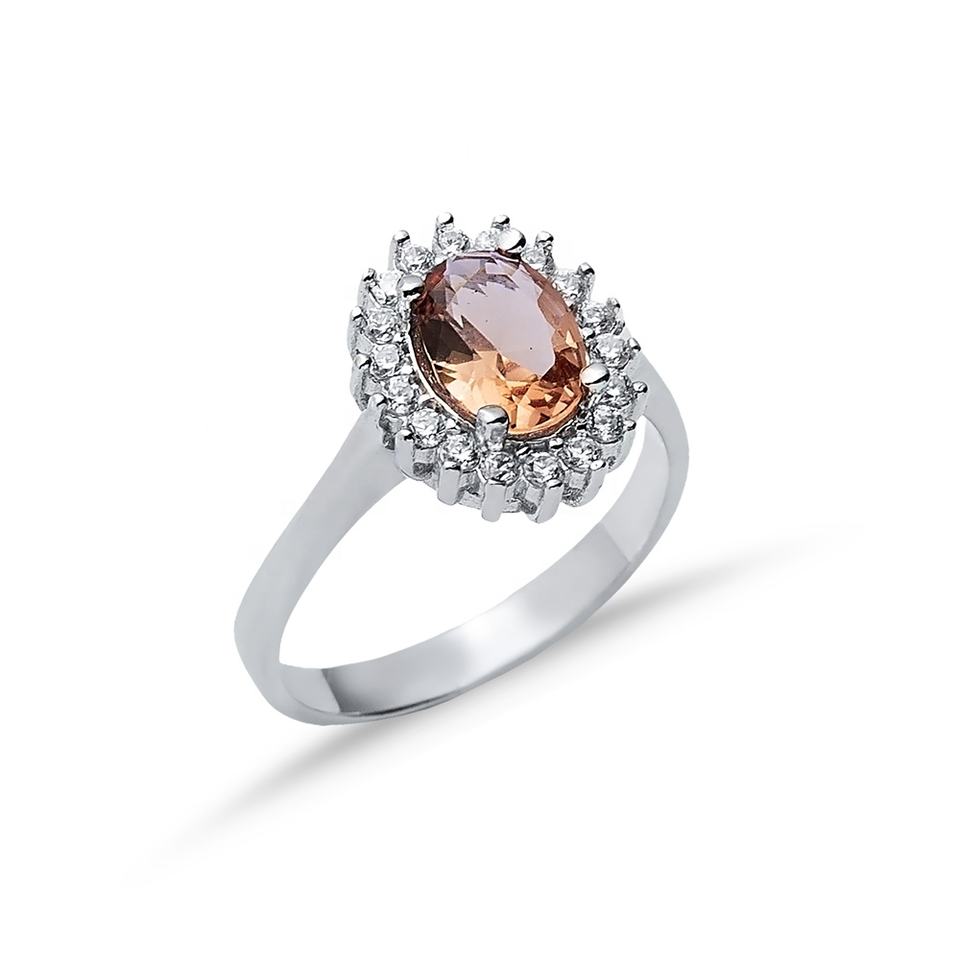 แหวนหินซัลทาไนต์ทรงรีสำหรับสตรีโรเดียมทำมือสไตล์ตุรกีเครื่องประดับเงินสเตอร์ลิง925