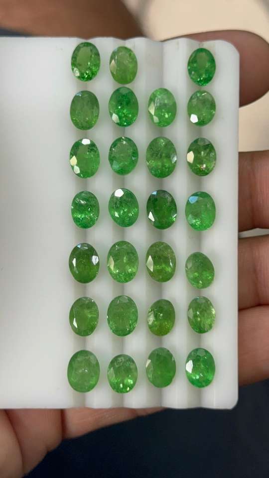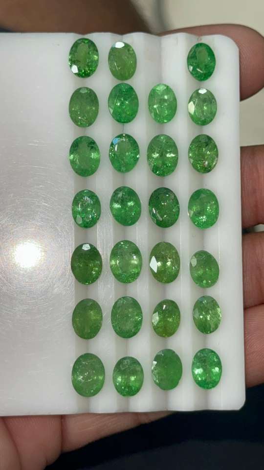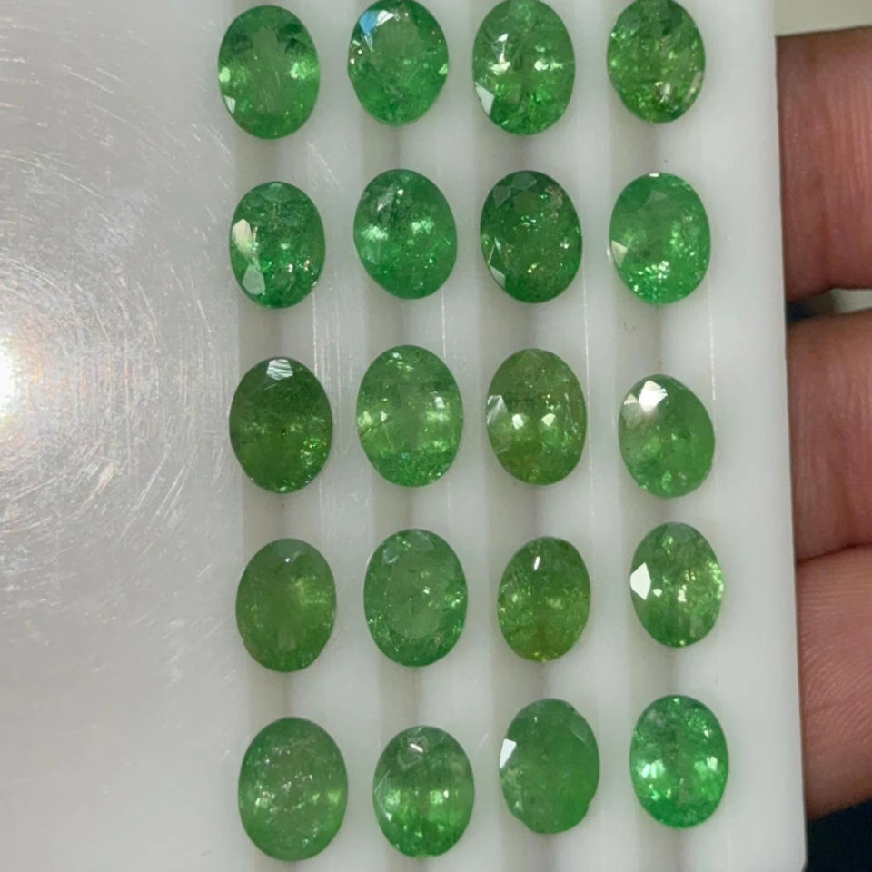 พลอย tsavorite ธรรมชาติทรงวงรีตัดเป็นชิ้น