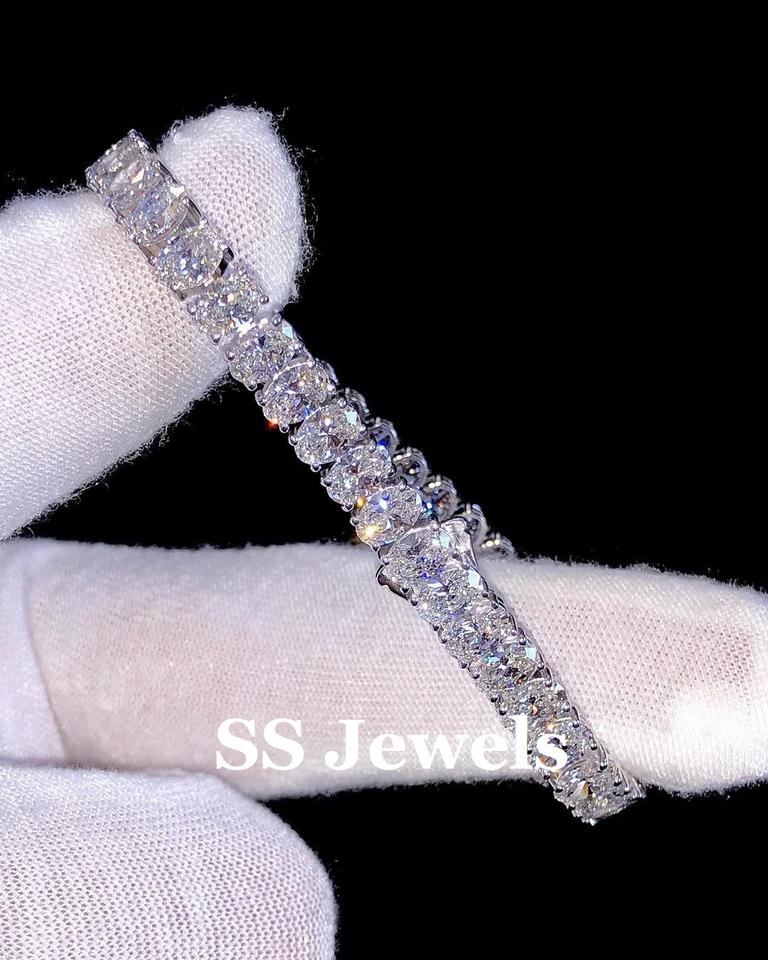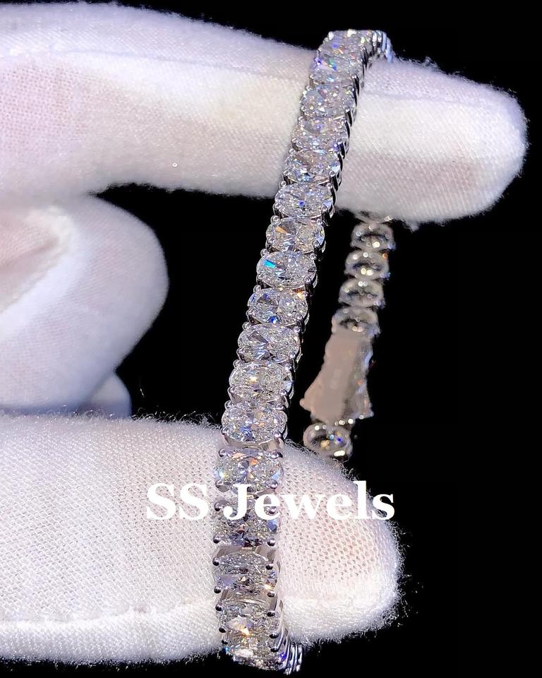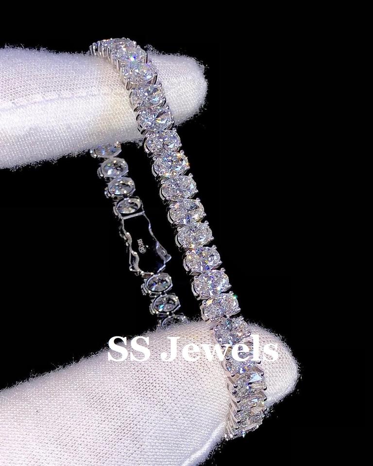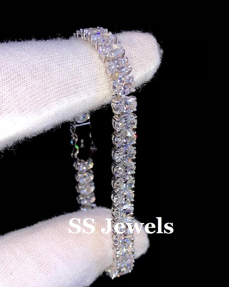 กำไลข้อมือเพชรโมอิสซาไนต์ทรงรี VVS สำหรับผู้หญิง หรูหรา เงินแท้ 925 ชุบโรเดียม ประดับเพชรเต็มวง ของขวัญงานแต่งงาน