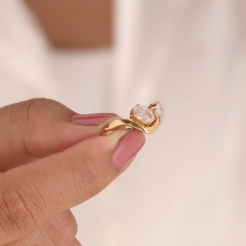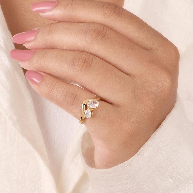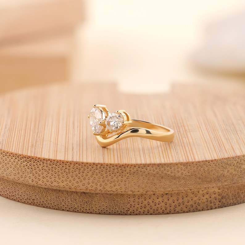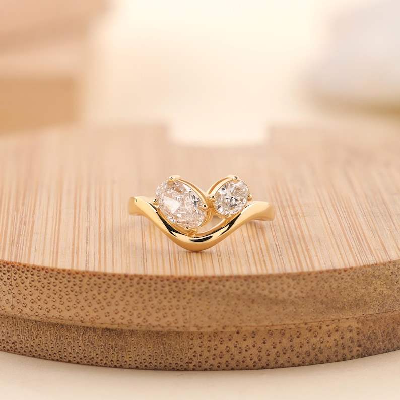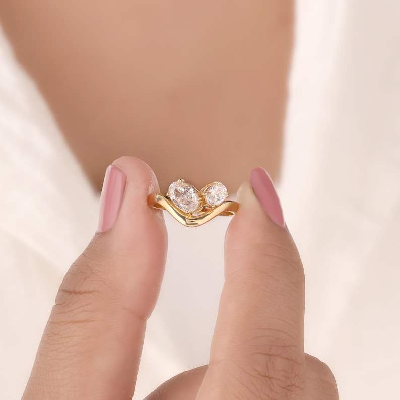 แหวนหมั้นเพชรซิคอนทรงรีสองเม็ด เครื่องประดับเจ้าสาวทันสมัย เงินแท้ 925 ชุบทอง 14K ของขวัญ