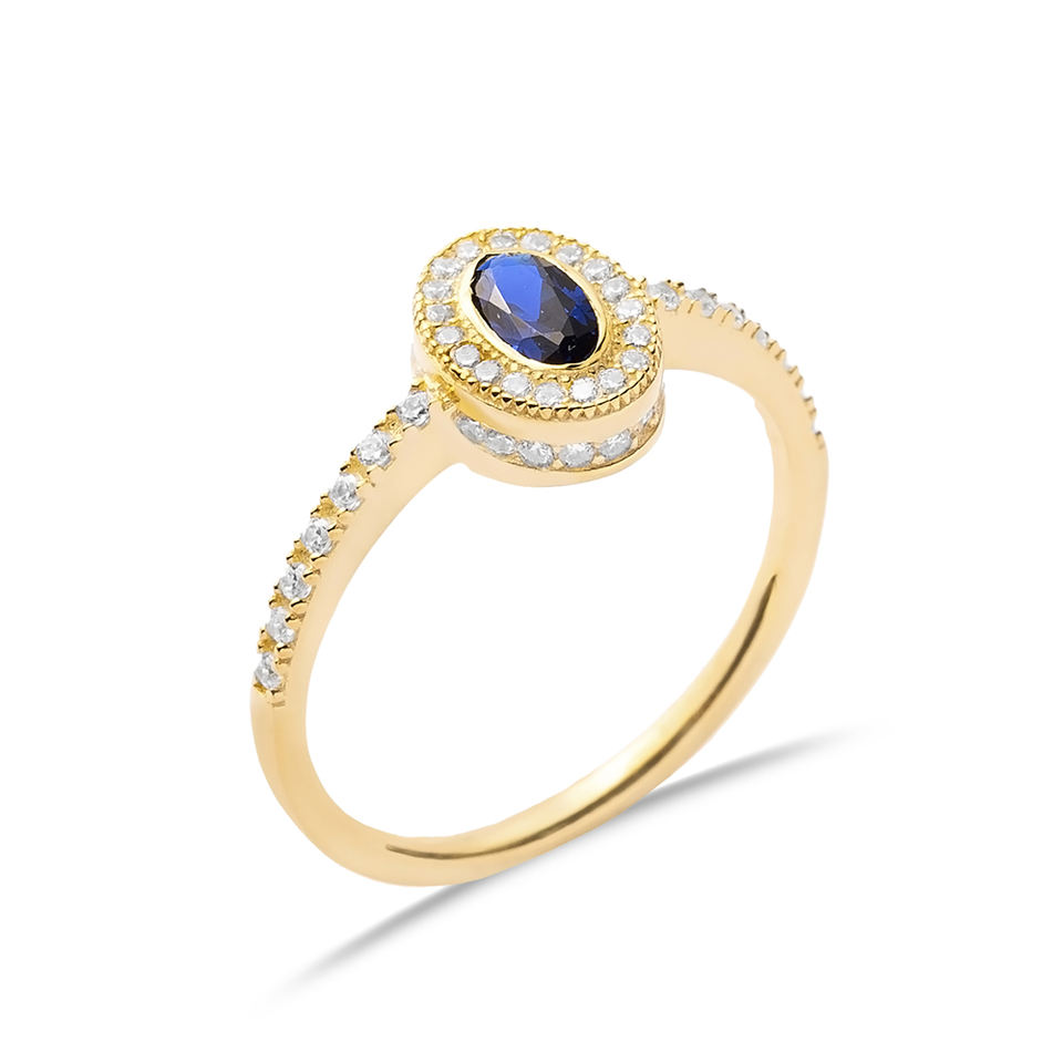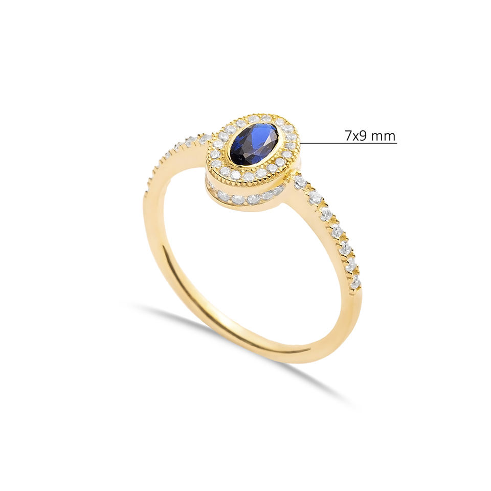 การออกแบบรูปไข่ไพลิน CZ พร้อมหินด้านข้างแหวนคลัสเตอร์ตุรกีทําด้วยมือขายส่งเครื่องประดับเงินแท้ 925