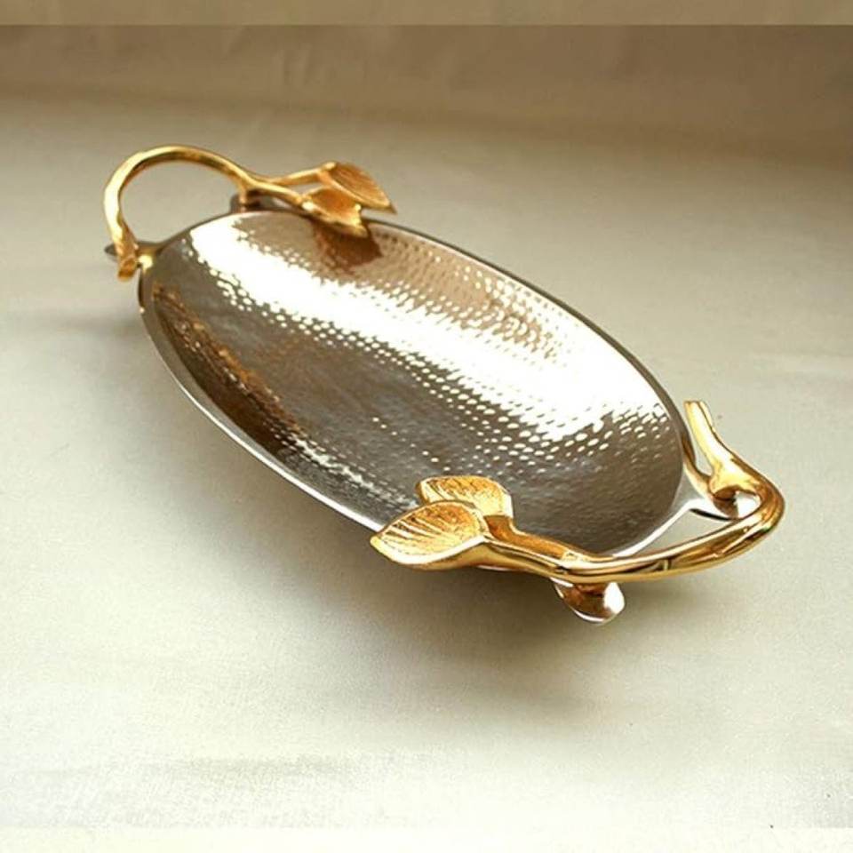 ถาดเสิร์ฟขนมและเค้กทำจากอลูมิเนียมรูปไข่พร้อมเคลือบสีทองสำหรับบ้านและโรงแรม