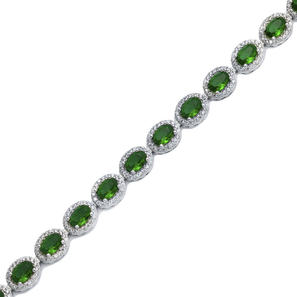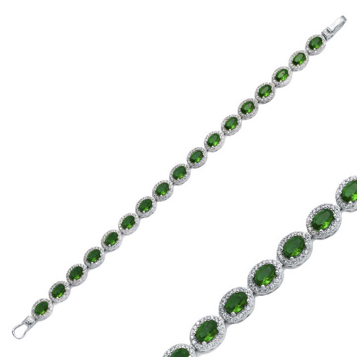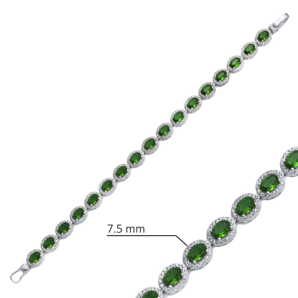 รูปไข่มรกตหิน CZ โรเดียมชุบขายส่งแฮนด์เมด 925 สร้อยข้อมือเทนนิส Siler เงินสเตอร์ลิง