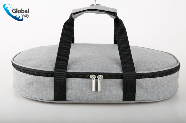 จานอบแก้วรูปไข่พร้อมที่ใส่ฉนวน-เก็บอาหารให้ร้อน/เย็นสำหรับปิกนิกปาร์ตี้และอาหารที่วางบนโต๊ะในเตาอบ