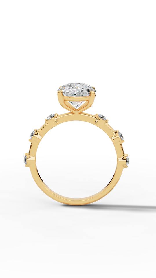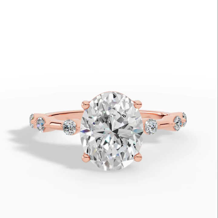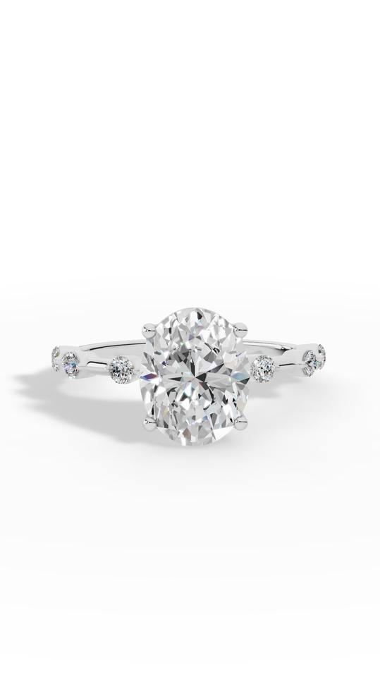แหวนโอวัลแบบซ่อนรูปวงแหวนพร้อมเพชรทรงโอวัลและทรงกลมเจียระไนแบบโซลิแทร์ เพาะเลี้ยงในห้องปฏิบัติการ ทอง 10K ขายส่ง OEM ผู้จัดจำหน่ายเครื่องประดับชั้นดี