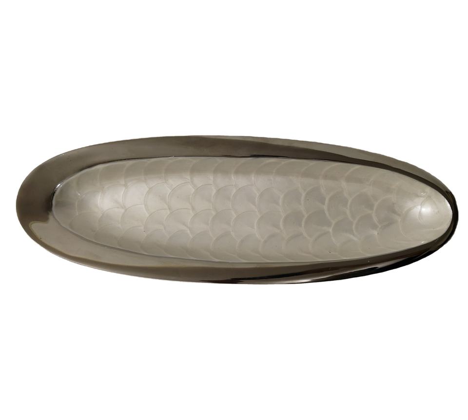 ถาดเสิร์ฟกาแฟทำจากสเตนเลสถาดตกแต่งบ้านทรงรีสำหรับตกแต่งบ้านหรูหราทำจากอลูมิเนียมและเหล็ก