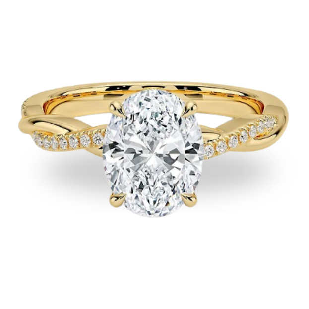 แหวนหมั้นประดับเพชรรูปไข่บิดเกลียว