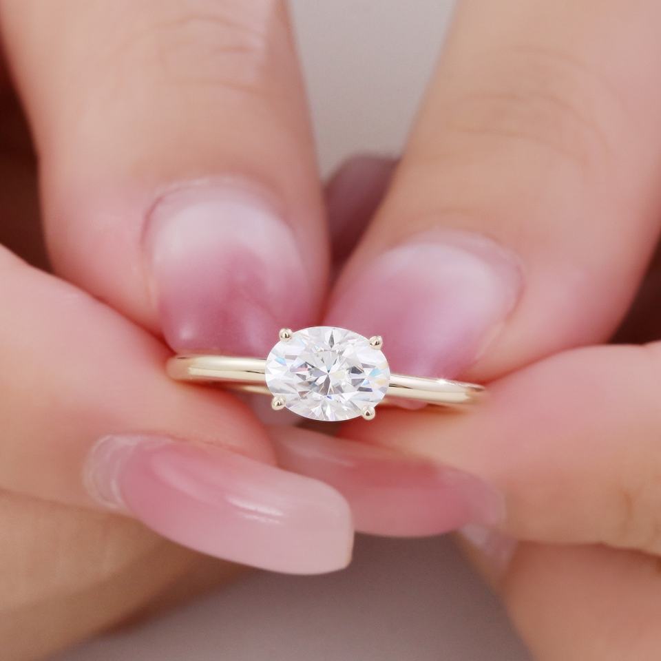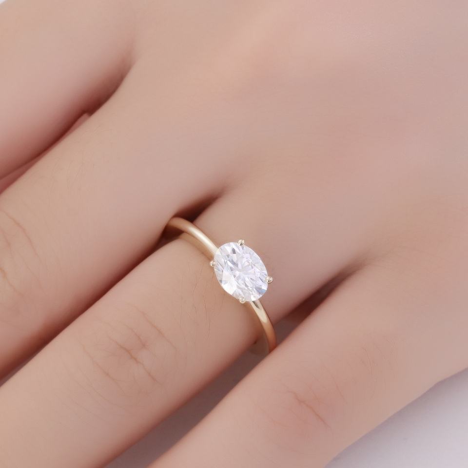 แหวนเพชรทรงรีเพาะเลี้ยงในห้องปฏิบัติการ ทองคำ 10K สีเหลืองทอง เครื่องประดับชั้นดี ของขวัญวันครบรอบแบบกำหนดเอง ฟรีการสลัก งานแต่งงานสุดหรู งานสังสรรค์