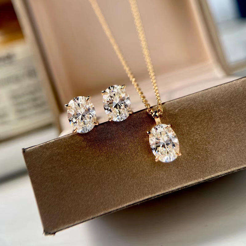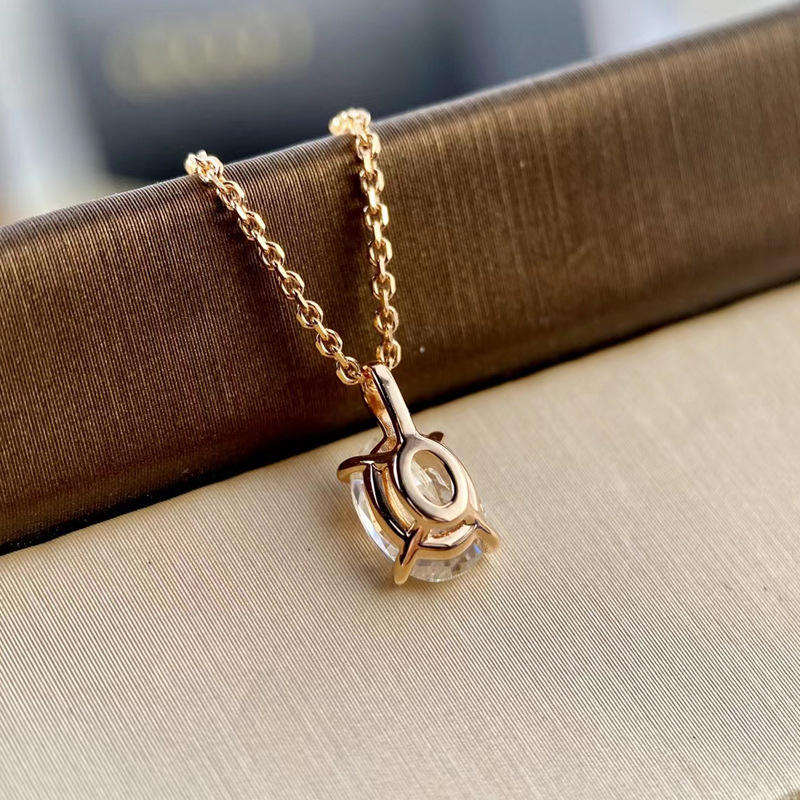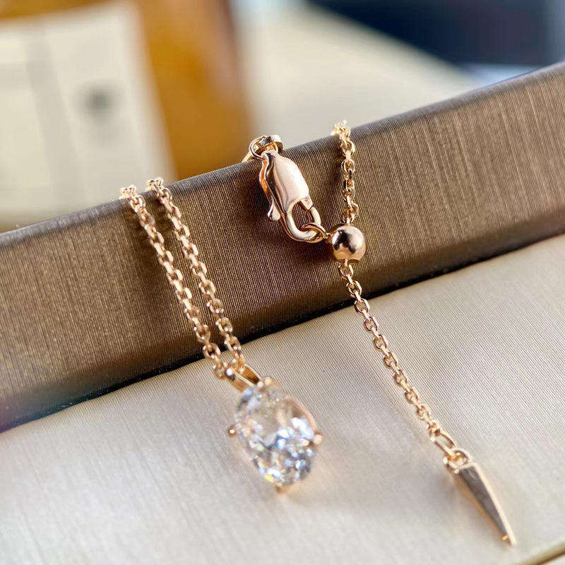 จี้เพชรรูปไข่ทรงโอวัล ผลิตในห้องปฏิบัติการ ได้รับการรับรองจาก IGI สี D-E-F ความสะอาด VVS-VS พร้อมสร้อยคอทองคำ 14K สีโรสโกลด์ สีไวท์โกลด์ และเงินสเตอร์ลิง