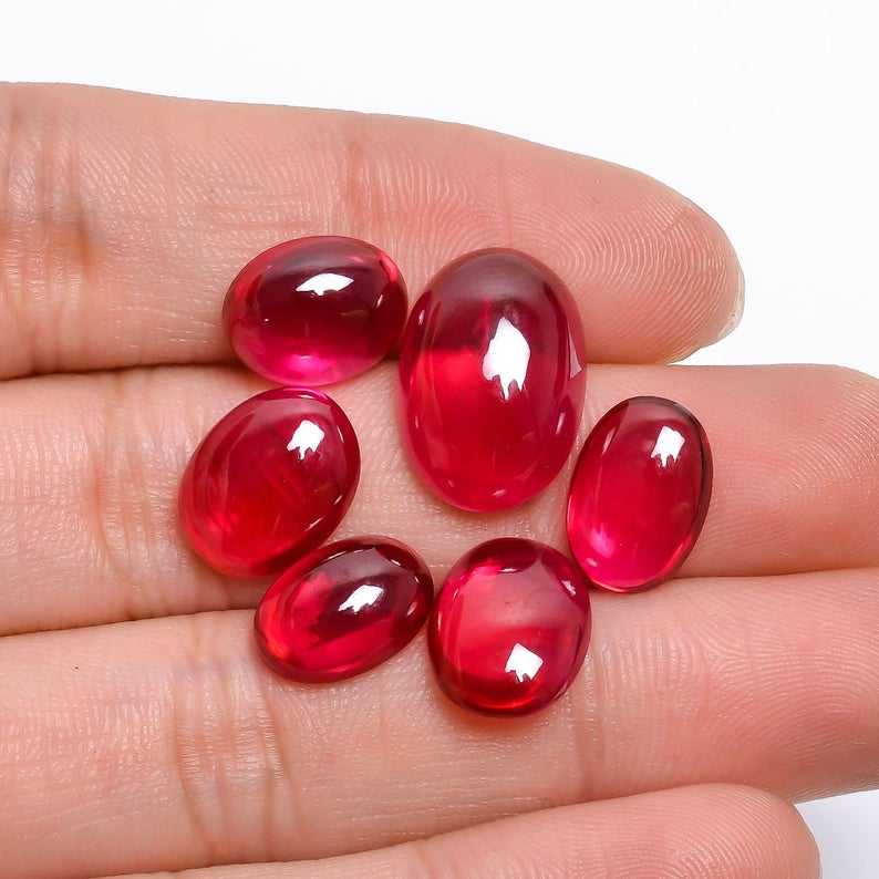 พลอยทับทิมสังเคราะห์ทรงรี ผลิตในห้องปฏิบัติการ สำหรับทำเครื่องประดับ งานฝีมือ และจำหน่าย หินขายดี