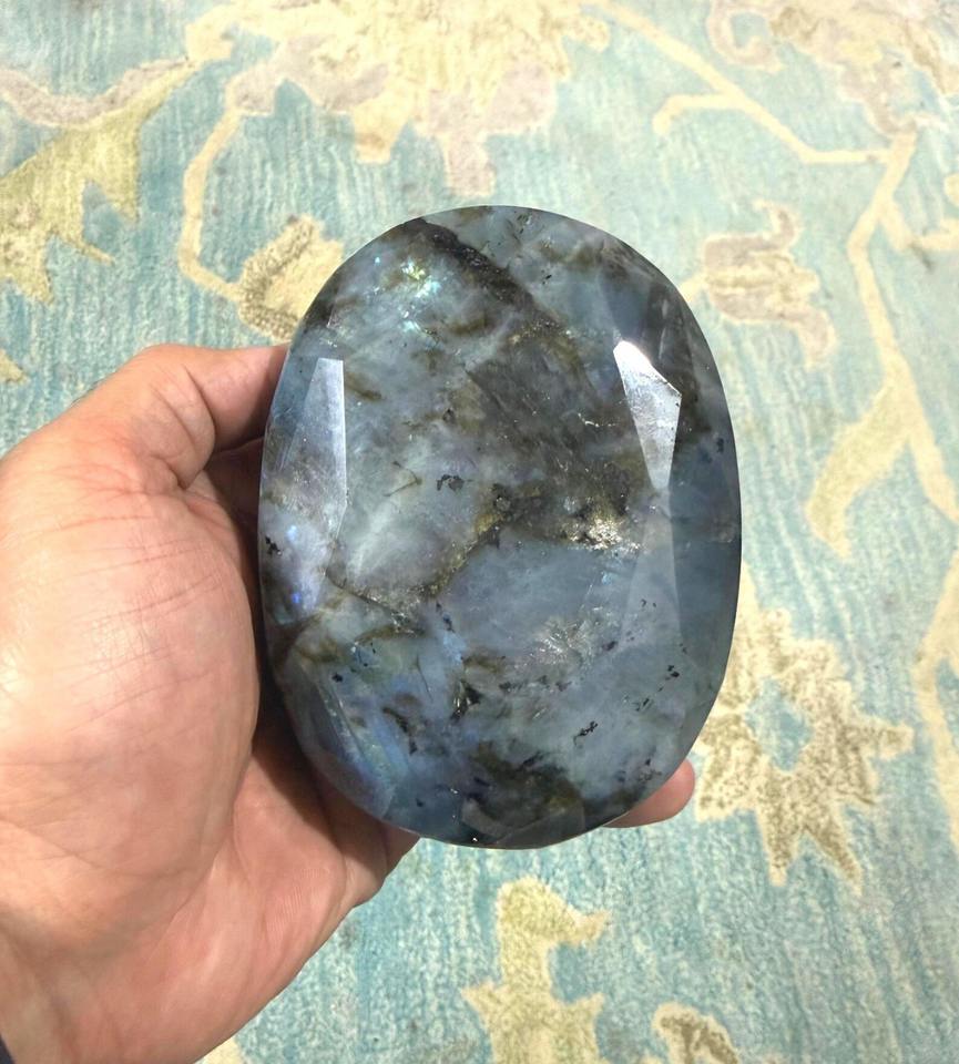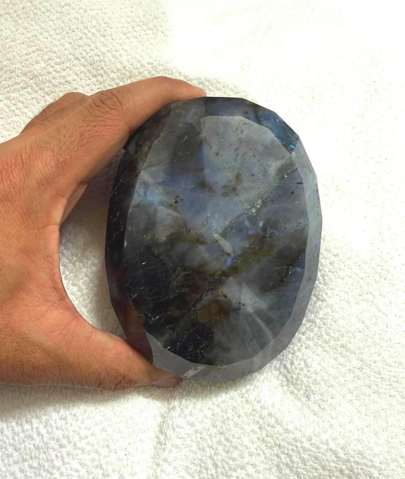 ลาบราโดไรต์รูปไข่ธรรมชาติคุณภาพสูง สีน้ำตาลประกาย ลาบราโดไรต์รูปทรงข้าวหลามตัด คริสตัลบำบัดแกะสลักลายเพชร สำหรับการทำสมาธิและเป็นของขวัญ