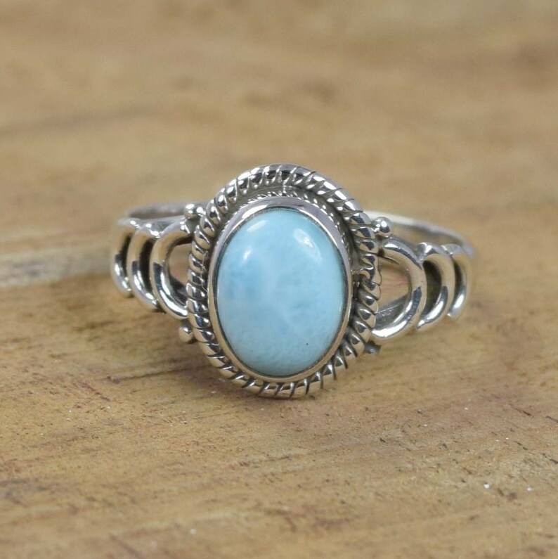 แหวนลาร์ิมาร์ทรงรี เงินแท้ 925 เครื่องประดับพลอย ทำด้วยมือ แหวนพลอยสีน้ำเงินแคริบเบียน ไซส์ 6 ขายส่ง