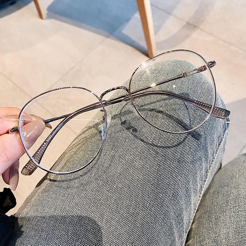 กรอบแว่นตาโลหะรูปไข่สำหรับผู้หญิงผู้ชายเลนส์พีซีแบบเต็มกรอบป้องกันรังสียูวีและป้องกันแสงสีฟ้าแว่นตาทรงกลมสำหรับทุกเพศ O1 6120
